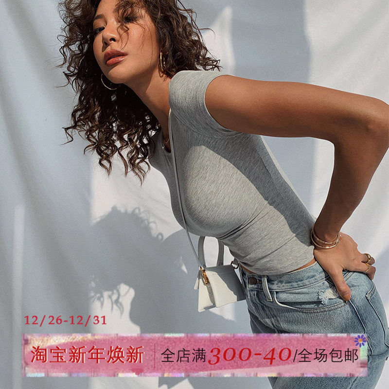 短款半袖正肩U领短袖T恤女早春夏装修身显瘦辣妹上衣紧身打底小衫