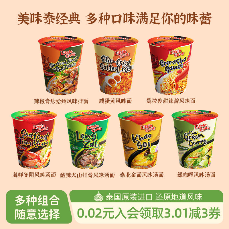 小厨师进口泡面冬阴功味火山排骨汤面咸蛋黄拌面方便面7/10/12杯