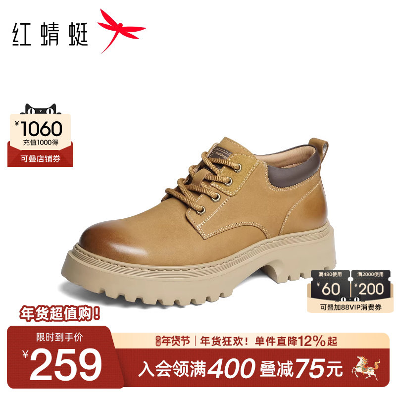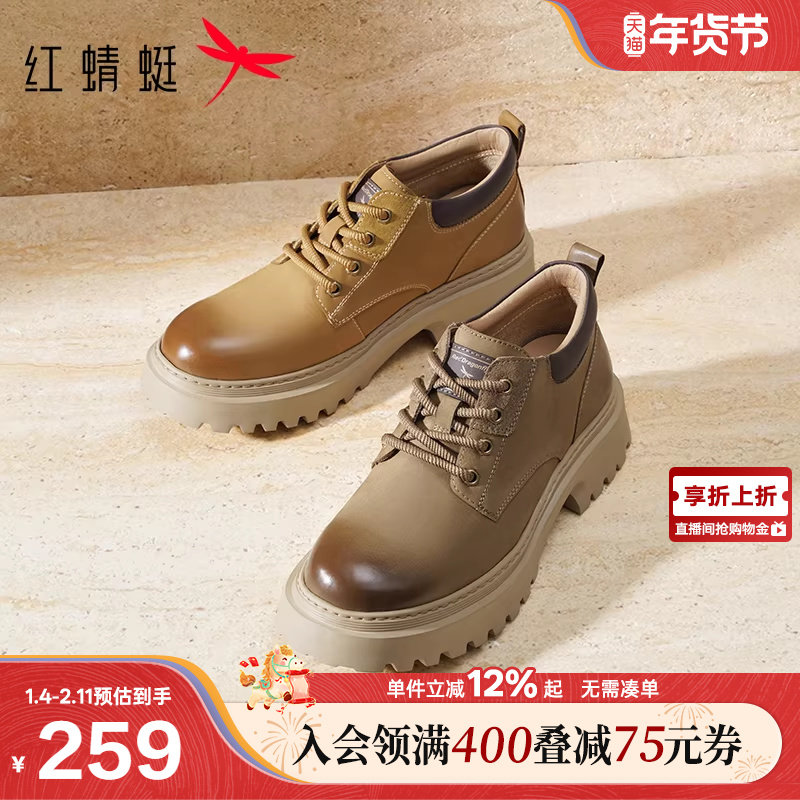 红蜻蜓工装鞋2025秋冬新款男鞋厚底粗跟休闲皮鞋英伦复古马丁靴男