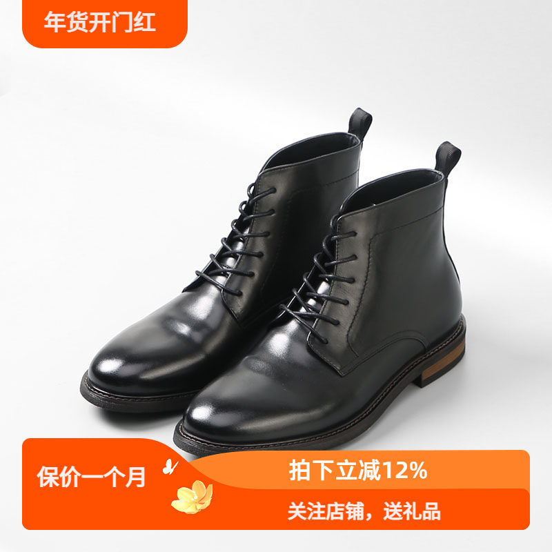 骆驼男鞋2025秋冬新款牛皮英伦潮流靴子增高厚底复古黑色马丁靴男