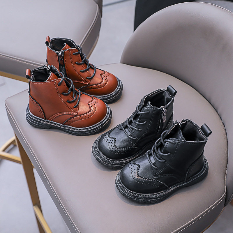 儿童短靴春季秋季新款英伦复古马丁靴男童女童宝宝户外靴子小皮鞋