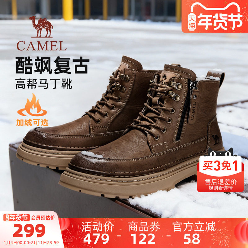 骆驼男鞋马丁靴2025秋冬新款防滑时尚户外复古英伦厚底加绒工装靴