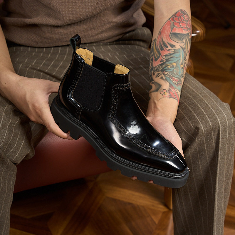 英伦复古马丁靴男士真皮商务正装布洛克切尔西靴厚底增高高帮男鞋