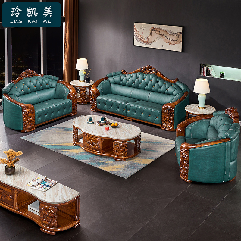 - 欧式雕花真皮沙发