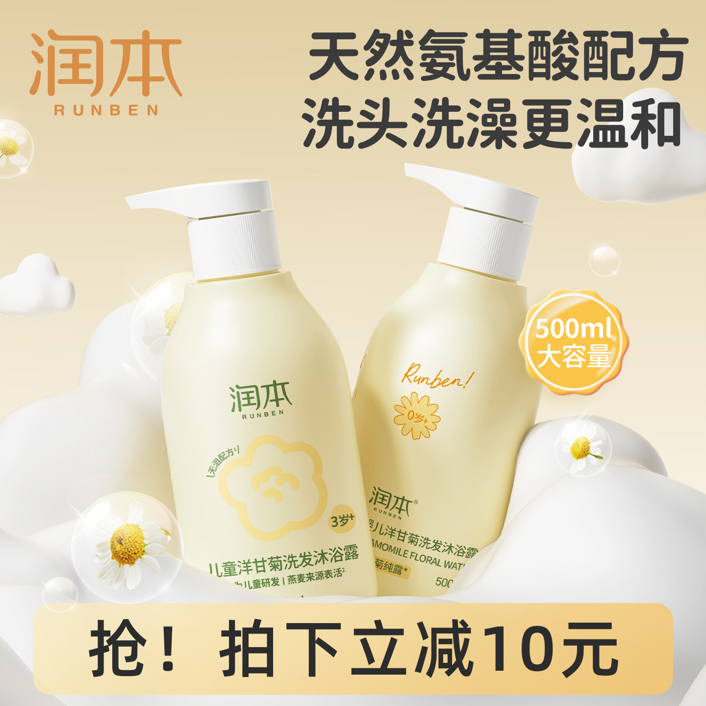 润本婴儿沐浴露洗发水二合一宝宝专用儿童沐浴乳止痒除螨抑菌正品