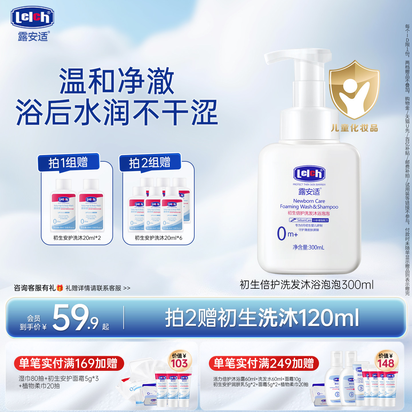 儿初宝婴儿沐浴露洗发水洗护二合一宝宝专用新生幼儿童洗头液泡泡