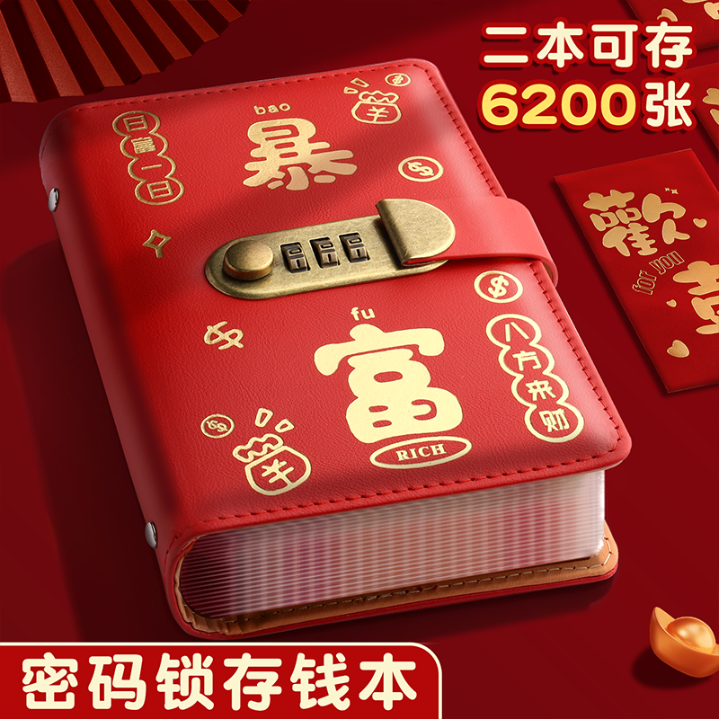 暴富存钱夹钱册现金存钱密码本2025新款密码锁可放现金零钱大容量收纳册保护套理财人民币纸币册一万元票据袋