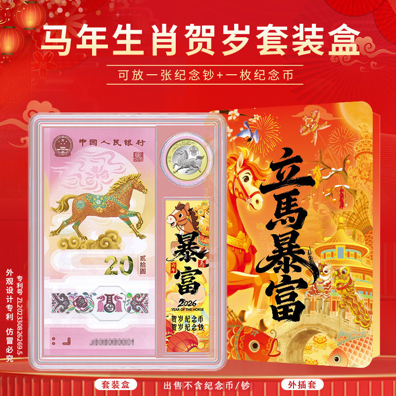 2026马年纪念币生肖纪念钞收藏盒礼品册收纳册可装一币一钞纸币册