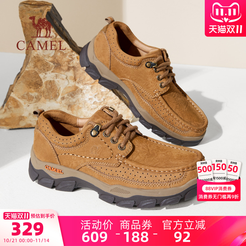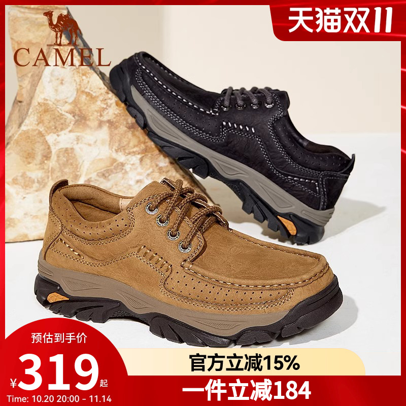 骆驼户外鞋男鞋2025冬季新款磨砂牛皮低帮工装鞋男舒适大头休闲皮