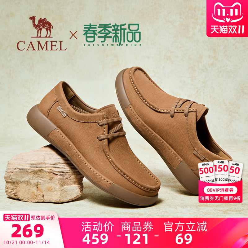 骆驼男鞋2025秋季新款舒适磨砂牛皮宽头轻量经典复古都市休闲鞋