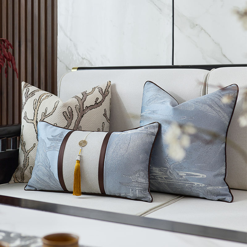 现代新中式抱枕套客厅沙发靠垫套样板间酒店床头靠枕蓝色山水腰枕