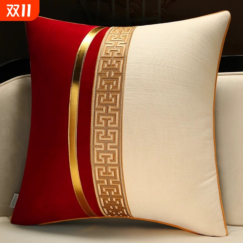 样板间新中式抱枕套高端沙发床头腰枕软装红色靠枕轻奢靠包床头枕
