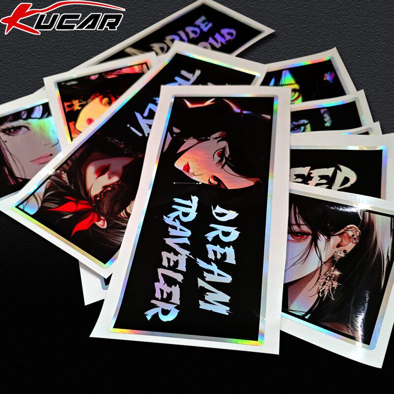 HMYT 动漫车贴镭射JDM二次元少女电动摩托车电脑机箱装饰痛车贴