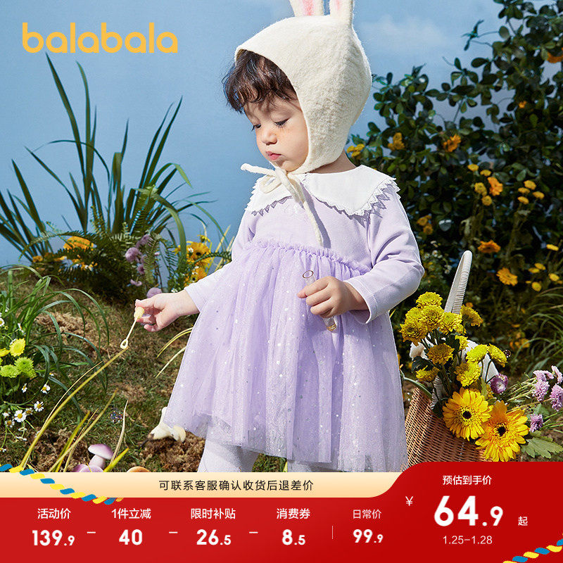 巴拉巴拉宝宝连衣裙蓬蓬网纱裙A字裙女童装2025秋季新款裙子儿童