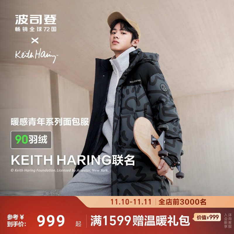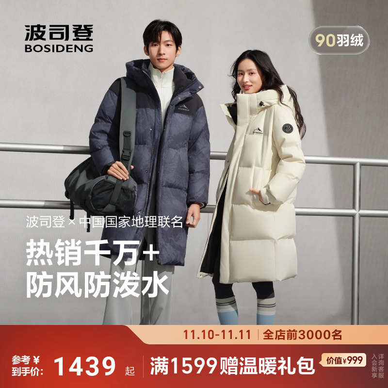 [联名款]波司登冬季新款时尚保暖连帽中长学生运动羽绒服男女同款
