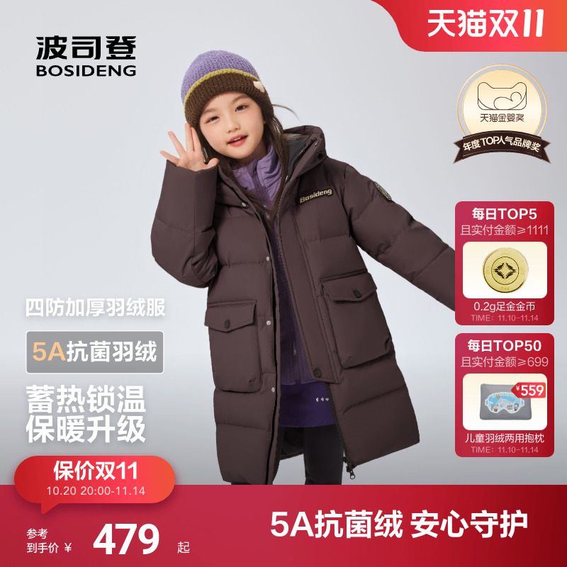 【赠玩偶包】波司登儿童绒服女童中长款收腰羽绒服舒适好打理外套