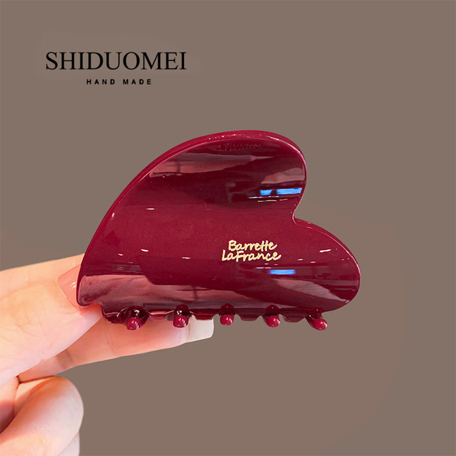 高级感复古红色爱心抓夹中号发夹法式气质金标字母马尾夹发卡头饰