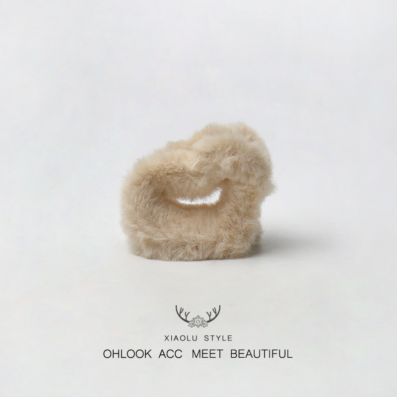 秋冬氛围感毛绒爱心抓夹中号发抓少女盘发鲨鱼夹可爱简约百搭头饰