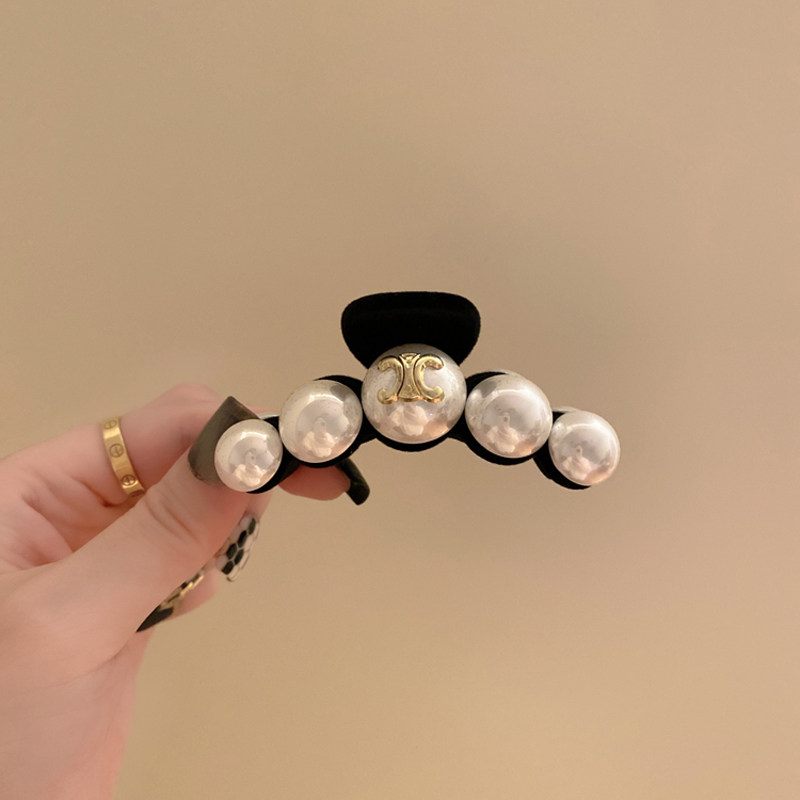 阿朵丝高级感枪黑色水钻珍珠抓夹中号发夹后脑勺半扎发鲨鱼夹发饰