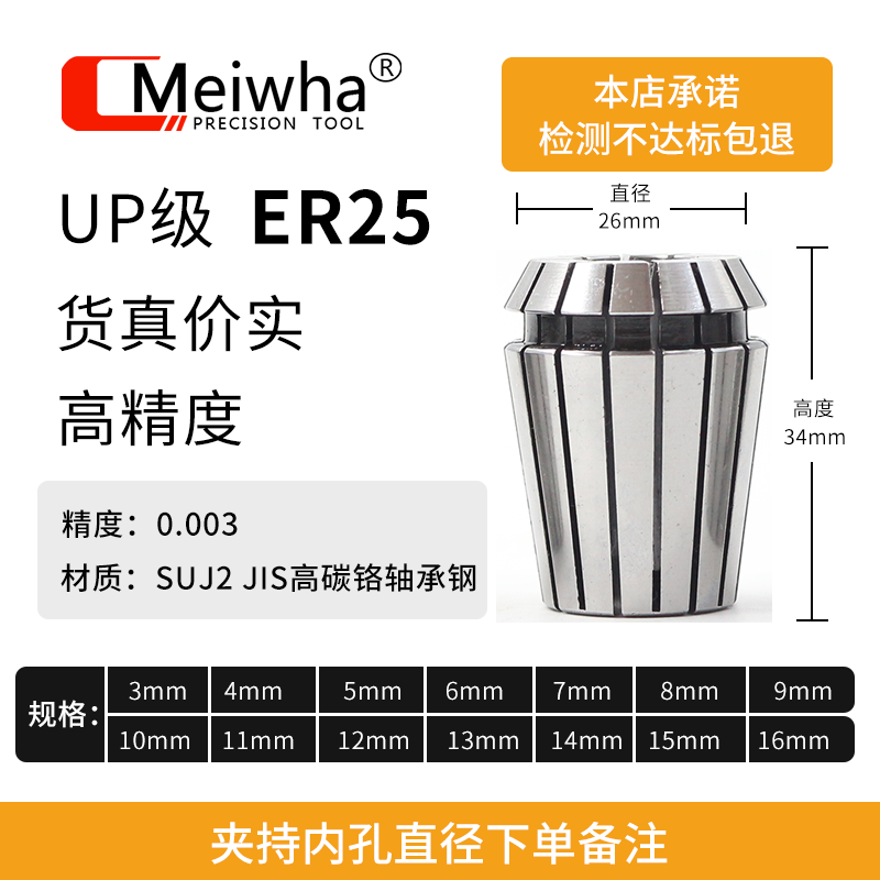 ER钻套UPER16弹簧高精密数控夹头机床配件ER夹套0.005mm弹性筒夹