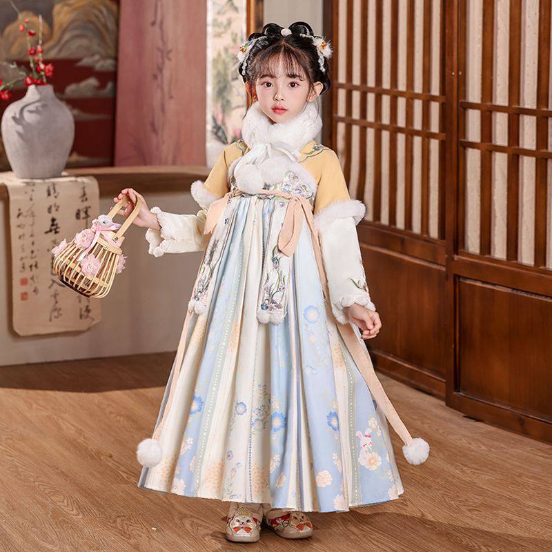 高端女童汉服中国古风加绒厚连衣裙襦裙超仙小女孩拜年服过新秋冬