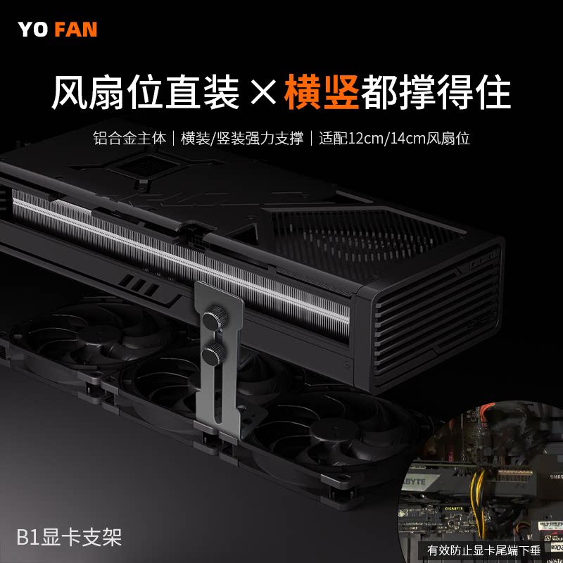 电脑台式海景房机箱L型显卡支撑架 可12CM风扇加装防弯托架支撑杆