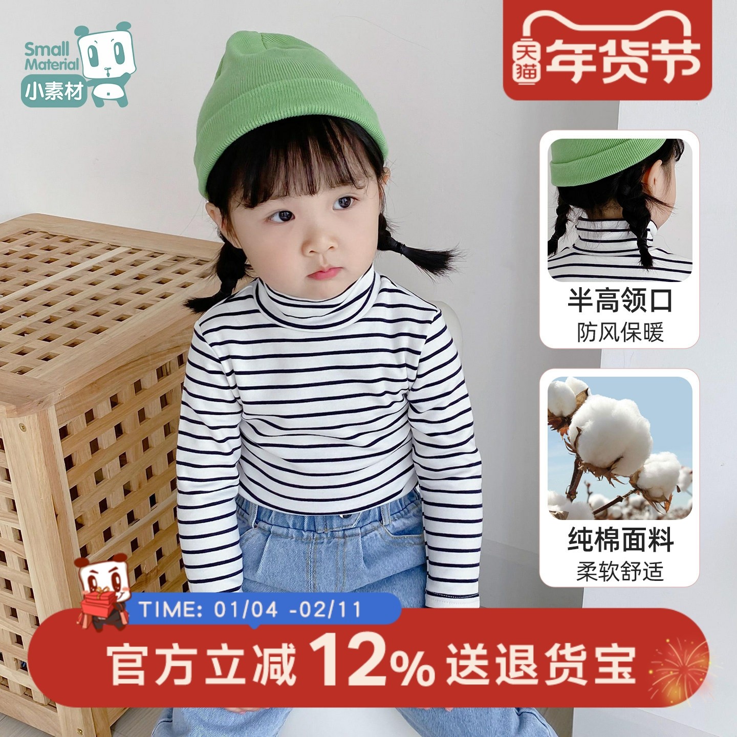 - 女童高领打底衫纯棉