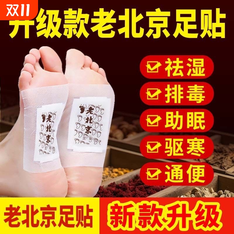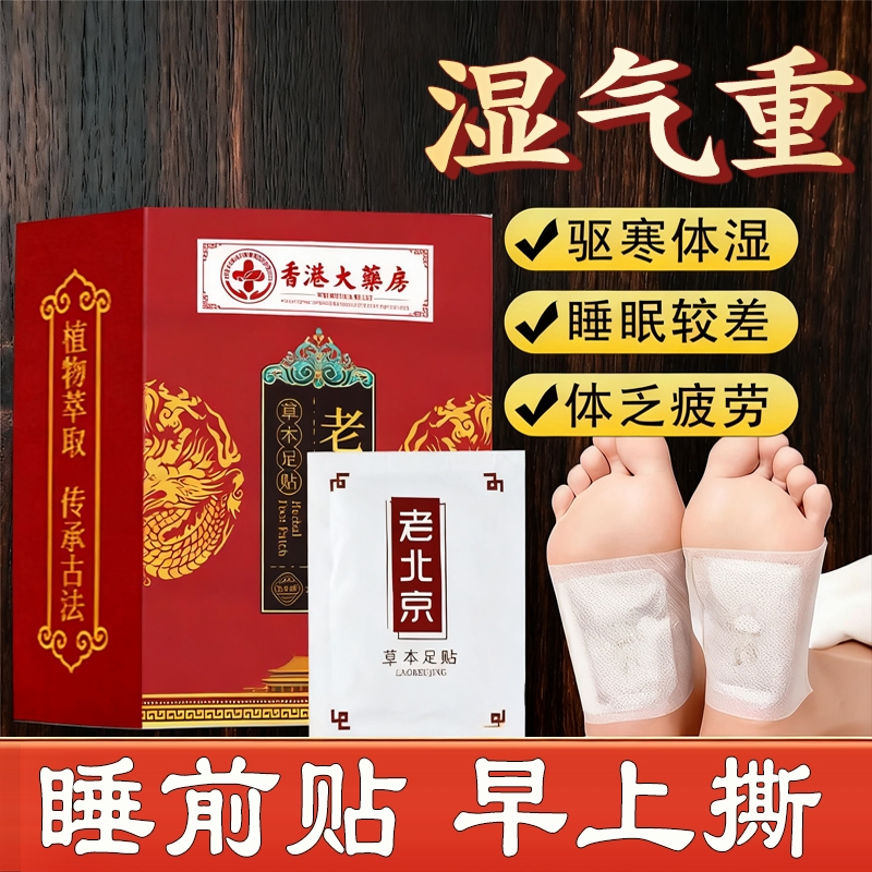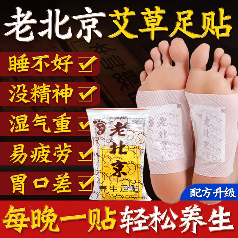 老北京艾草足贴正品去湿气太重除湿拔毒熟睡睡眠排毒祛湿足底脚贴