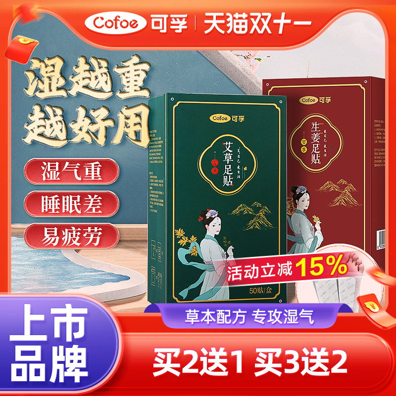 可孚艾草足贴艾灸贴祛湿祛寒去湿气重非排毒排体内湿寒男睡眠脚贴