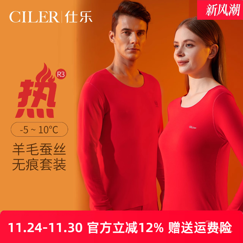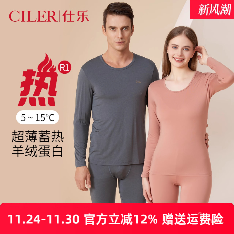 仕乐羊绒蛋白发热纤维套装超薄秋衣秋裤男款大码线衣线裤女本命年