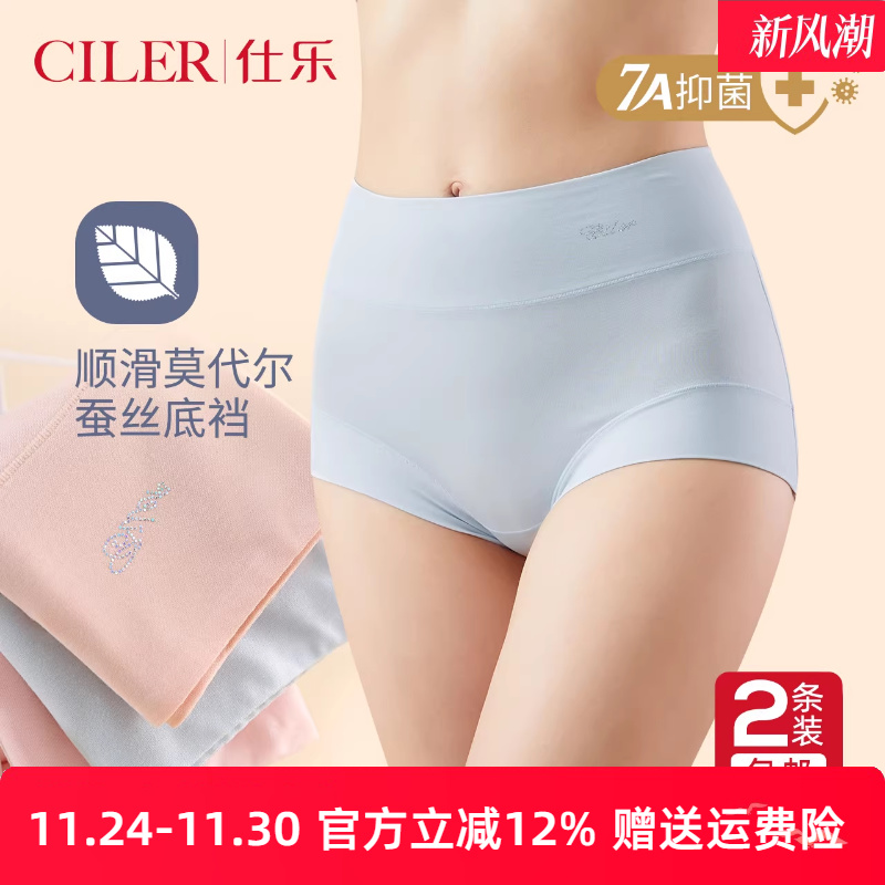 2条仕乐莫代尔内裤女7A抑菌高腰薄款大码三角裤红色本命年马年