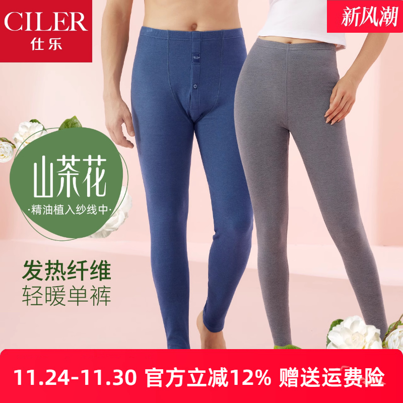 仕乐羊绒蚕丝秋裤男单件中厚发热纤维保暖裤女款修身高弹内穿大码