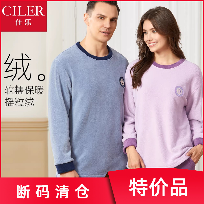 仕乐摇粒绒家居服男士秋冬款保暖加厚睡衣女本命年红色青少年学生