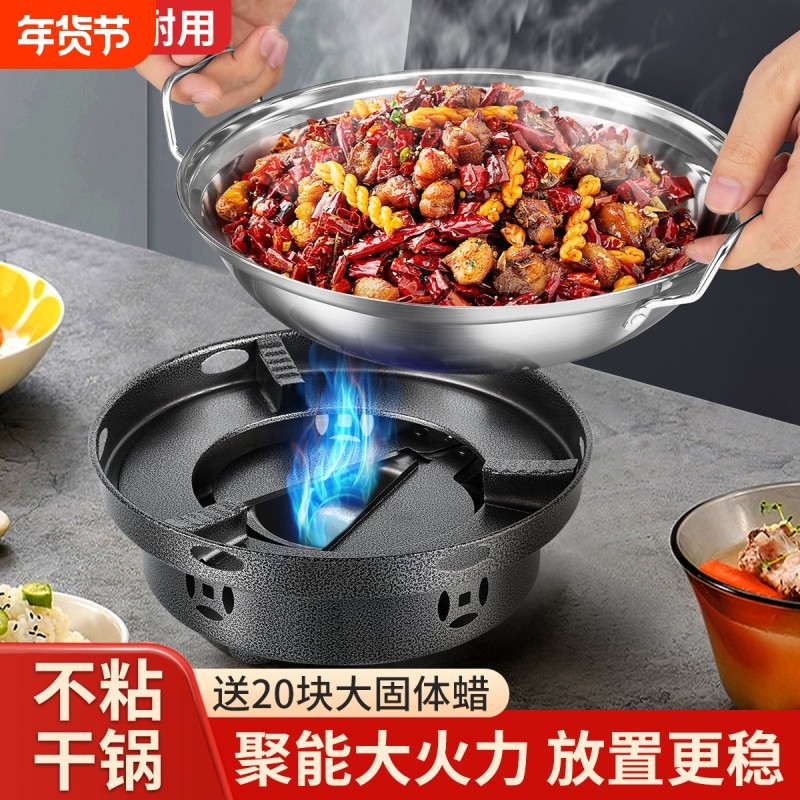 干锅锅具锅仔家用酒精炉2025新款不锈钢固体酒精块小火锅炉子特厚