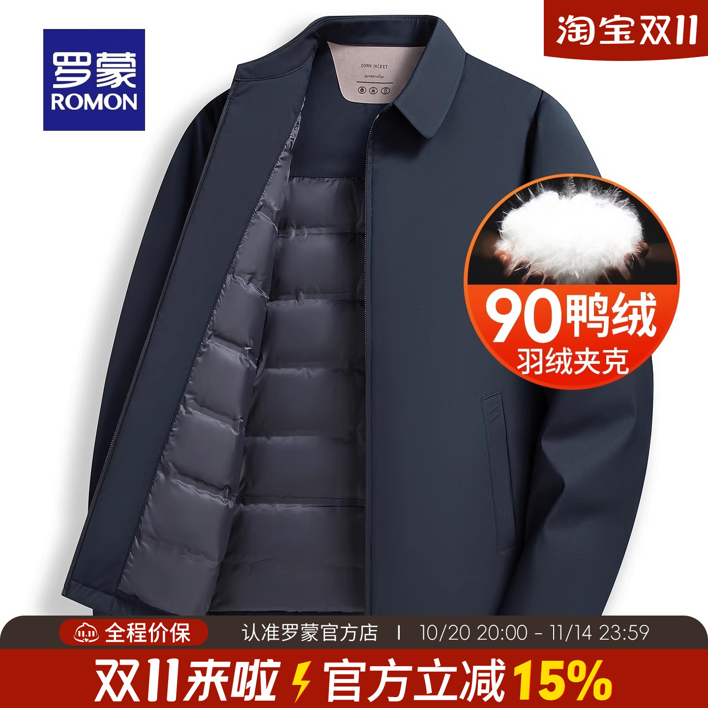 罗蒙男士商务休闲短款翻领羽绒服2025冬季新款保暖轻暖夹克外套男