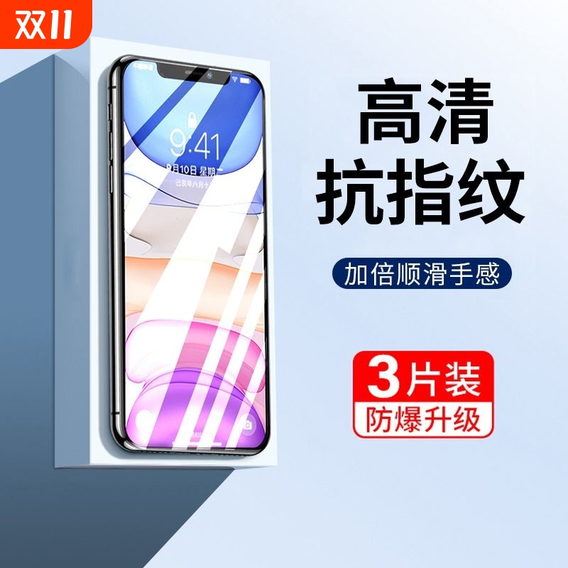 适用苹果11/12/13钢化膜x/xs全屏xr手机pro贴膜promax覆盖mini保护6s玻璃7p黑边max钻石8plus防爆xsmax蓝光ip