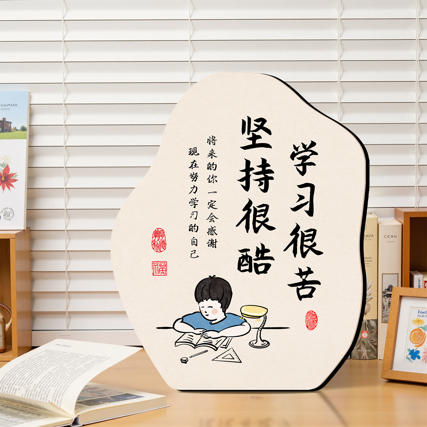 学习很苦坚持很酷书法相框摆台客厅电视柜氛围摆件高级励志装饰画