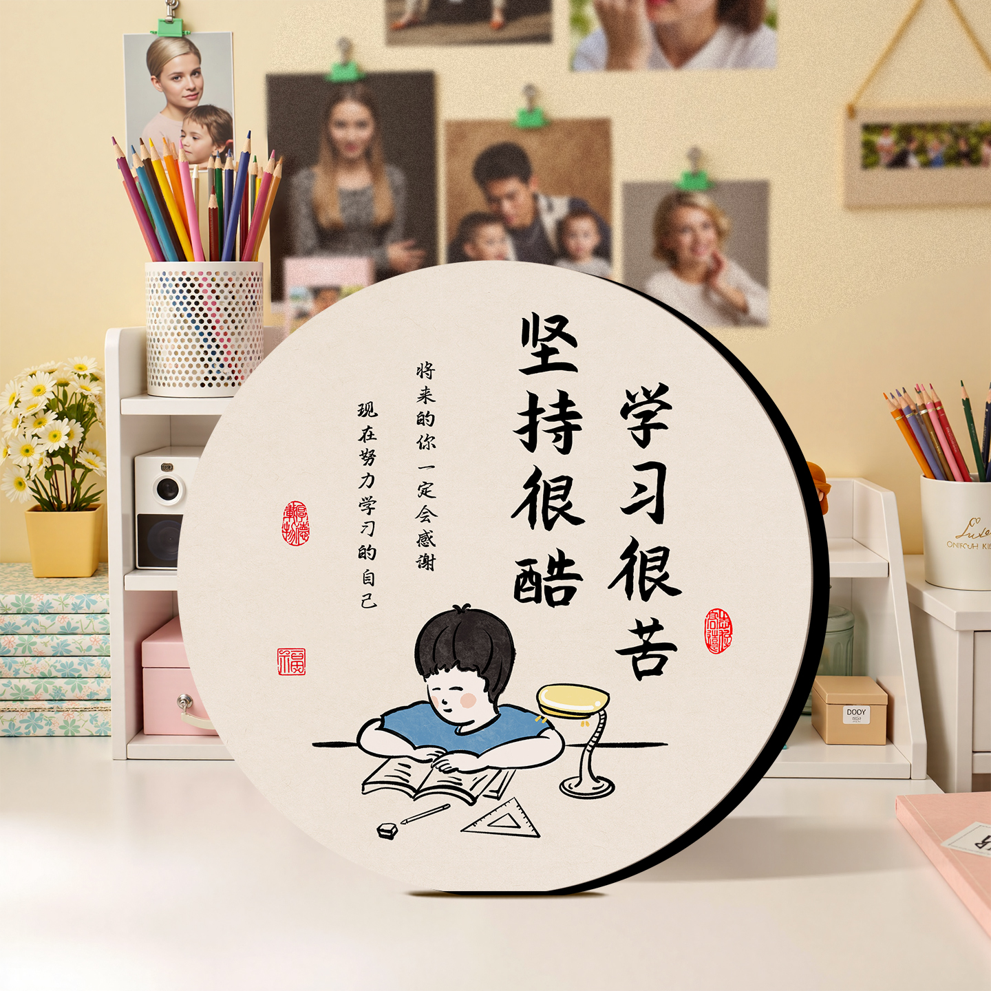 学习很苦坚持很酷书法相框摆台书房氛围感桌面摆件卧室励志装饰画