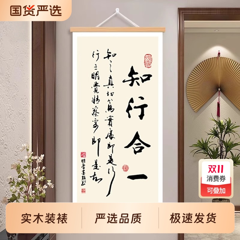 知行合一字画书法挂画玄关卷轴办公室墙画客厅书房茶室励志装饰画