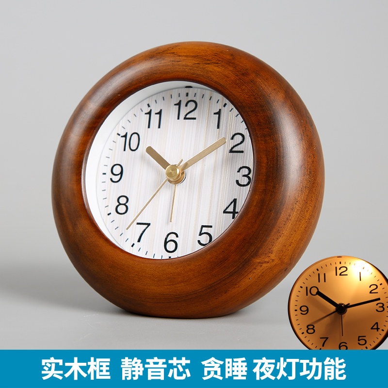 TQJ实木夜灯贪睡小闹钟床头座钟学生用静音桌面时尚台面时钟台钟