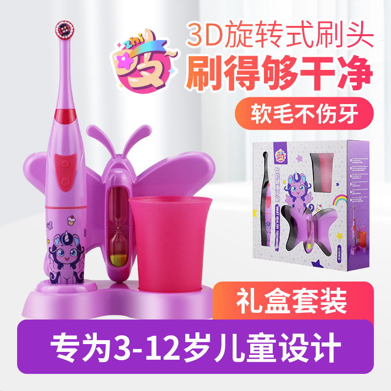 儿童电动牙刷套装智能充电全自动旋转式软毛3-9-15岁宝宝女童女孩