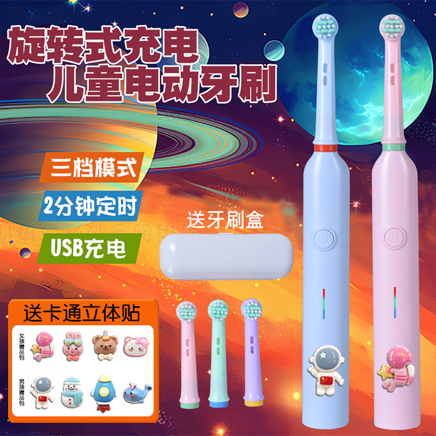 太空人儿童充电电动牙刷旋转式儿童自动牙刷卡通5-15岁软毛牙刷
