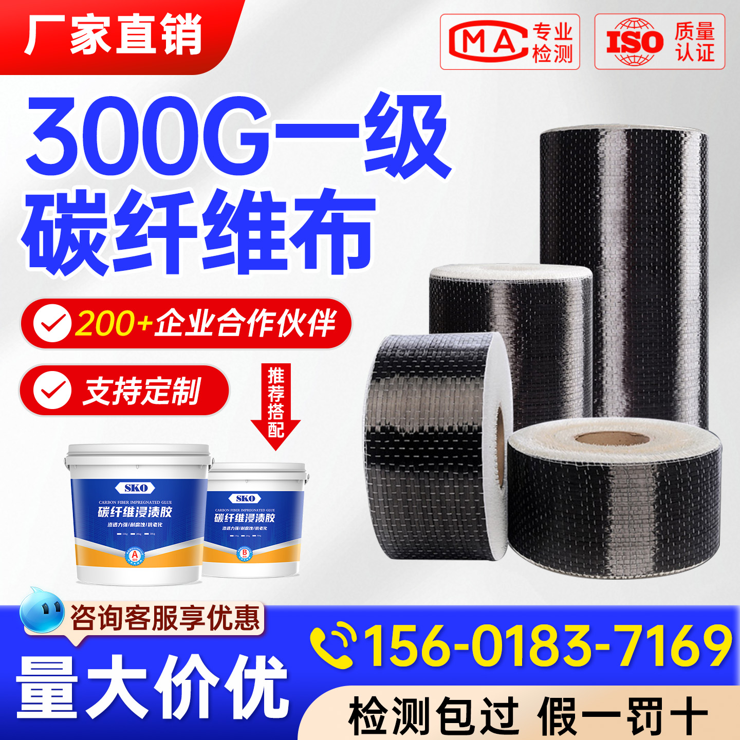 300g一级碳纤维布加固建筑工程混凝土裂缝修补高强度浸渍胶AB组