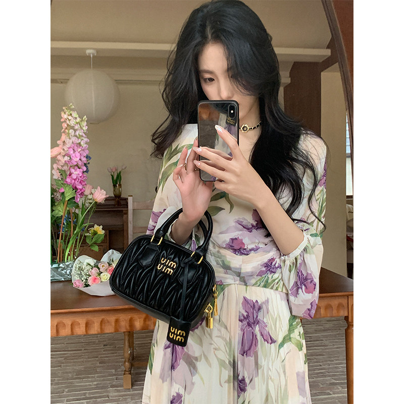 MAXRIENY度假风连衣裙松弛感碎花裙25秋荷叶边x型收腰长袖茶歇裙