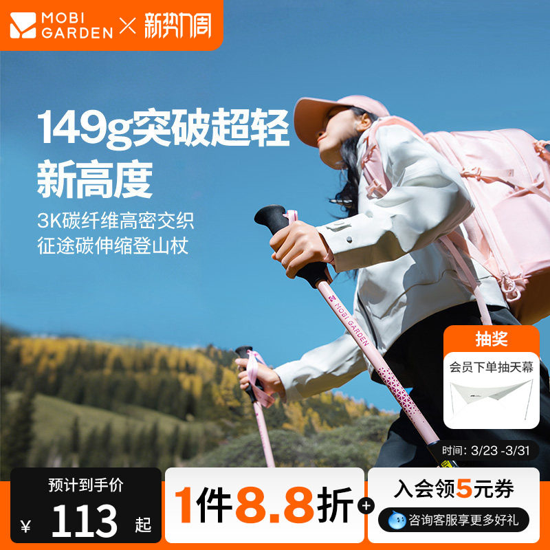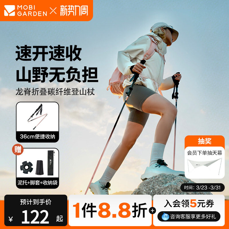 牧高笛逐风折叠碳纤维登山杖碳素超轻量越野爬山专业户外徒步手杖