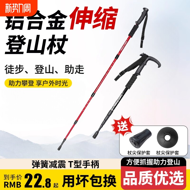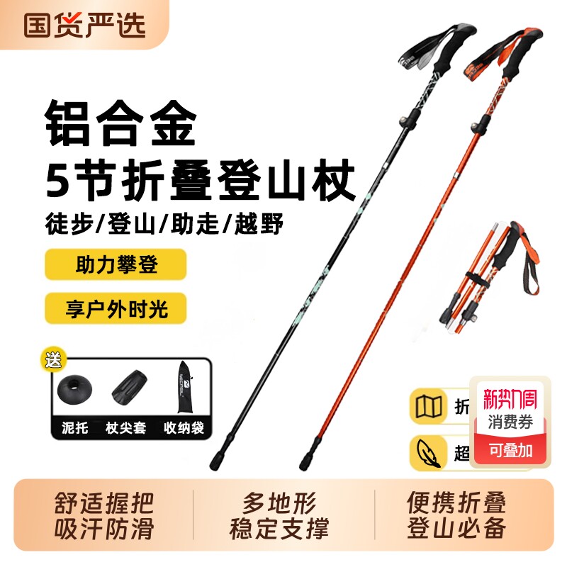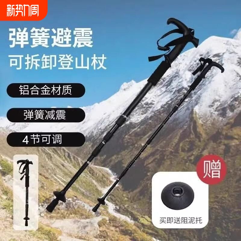 户外登山杖手杖无碳素超轻伸缩折叠防滑铝合金拐杖多功能爬山装备