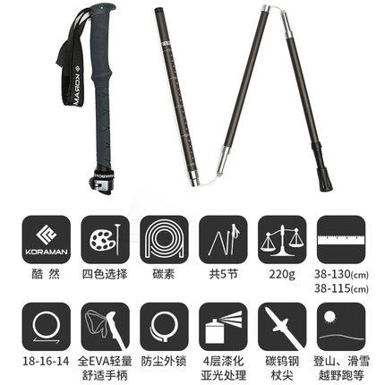 奥尼捷碳素纤维登山杖超轻折叠徒步爬山多功能专业户外越野跑手杖