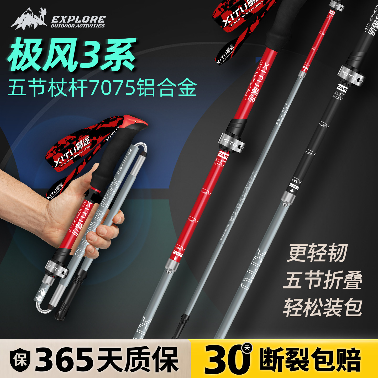 曦途登山杖超轻短碳素纤维户外折叠伸缩行山手杖女徒步爬山拐棍男