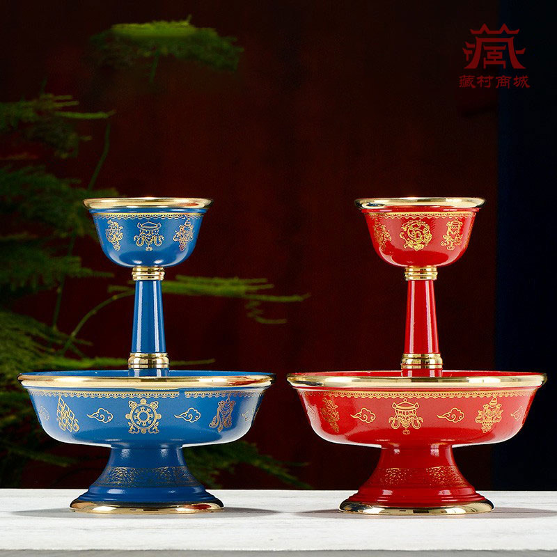 欧斯特 琉璃酥油灯灯座 高脚莲花烛台 佛前供水杯 供果盘宝瓶
