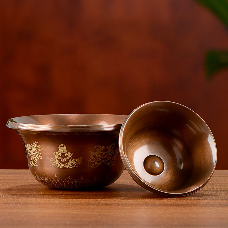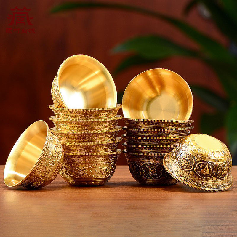 藏式红铜供水碗加厚佛前供水杯家用桌面七供八供圣水杯净水杯摆件